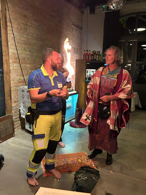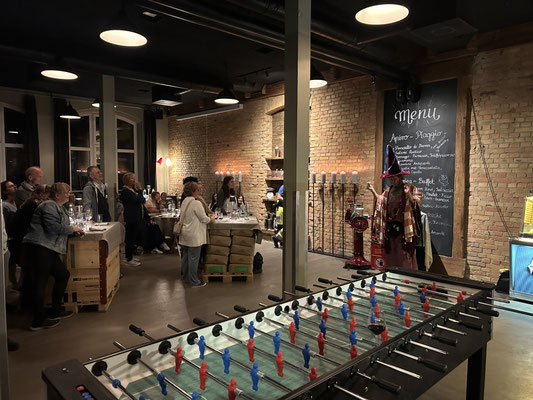 Er führte uns mit Witz und Eleganz durch den Abend, moderierte, stellte spannende Fragen an Gründungsmitglieder und langjährige Mitwirkende und liess uns so gemeinsam in die Anfangszeiten unserer Regionalgruppe eintauchen. Doch damit nicht genug: es stellte sich heraus, dass unser charmanter Gastgeber in Wirklichkeit niemand Geringerer war als der talentierte Hannes vo Wald – Zauberer, Moderator und Entertainer. Mit seiner verblüffenden Zaubershow und seinem schalkhaften Humor brachte er uns zum Staunen, zum Mitfiebern (oder Mitleiden?) mit Involvierten «Assistentinnen und Assistenten» und vor allem zum Lachen. Wir haben selten so viel gelacht und waren restlos begeistert!